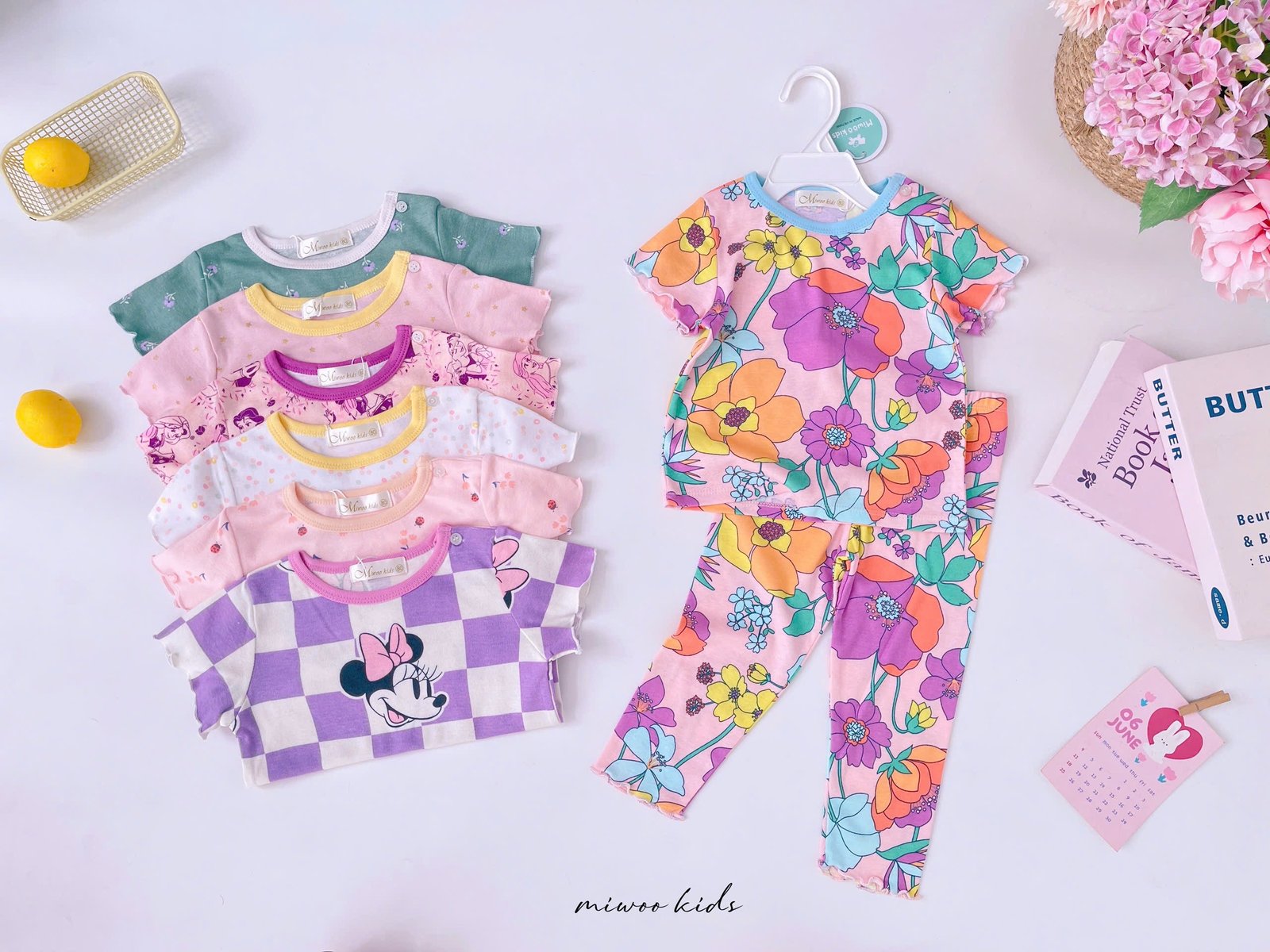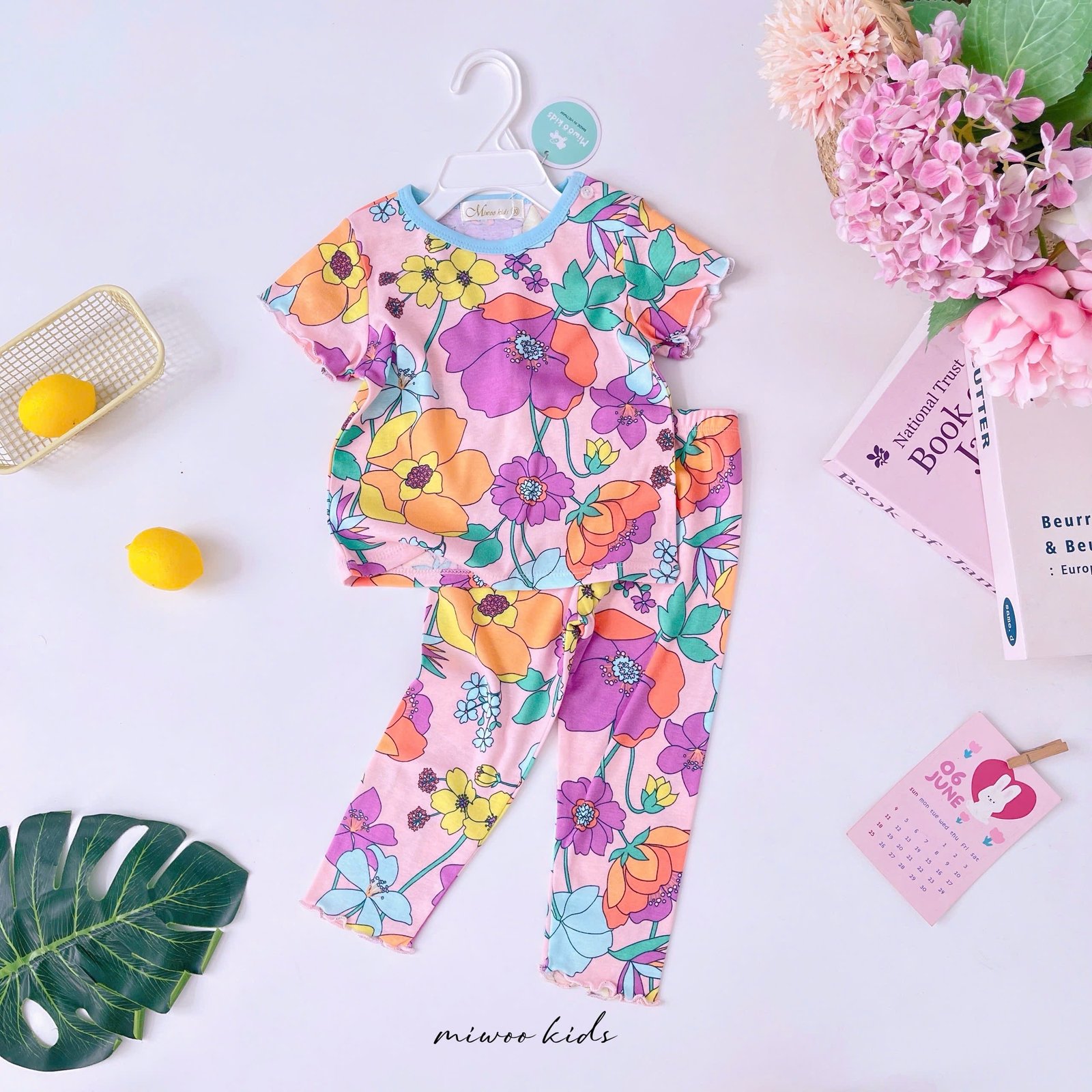 Kate features a classic crew neck, short sleeves, and lettuce-edge hems on the sleeves and pants. Made from cotton-rich fabric designed for ultimate comfort and playful style. It includes shoulder snap buttons on the top for quick, hassle-free dressing!