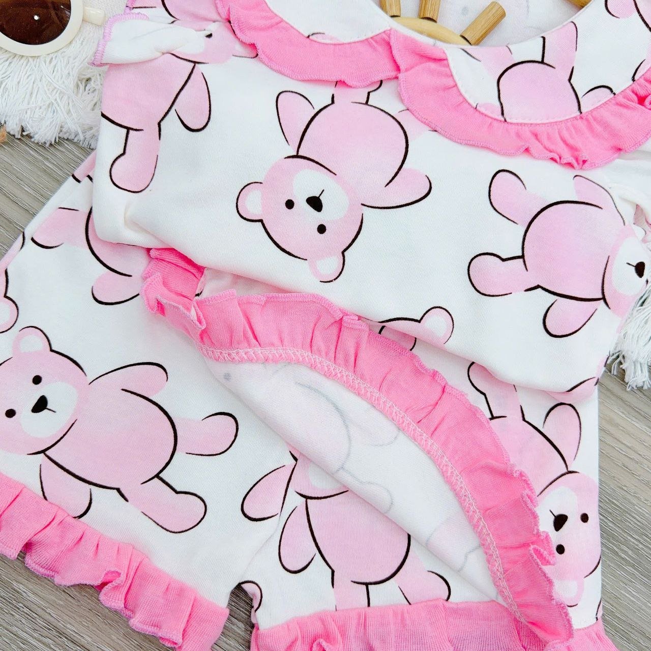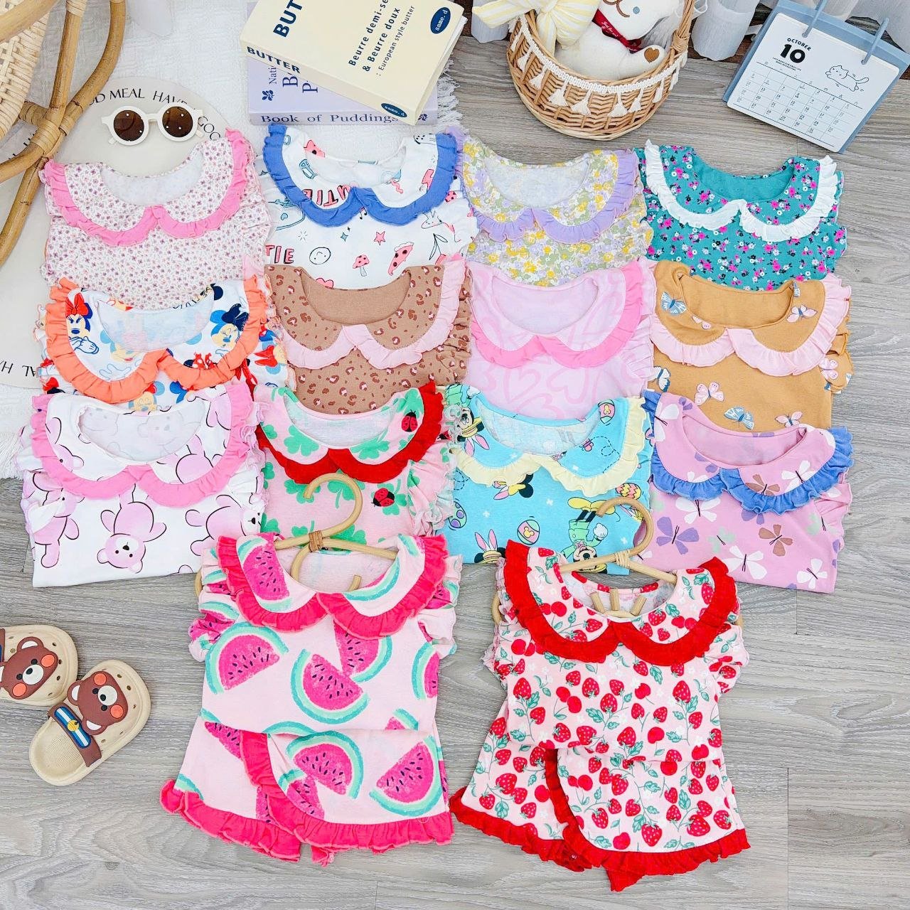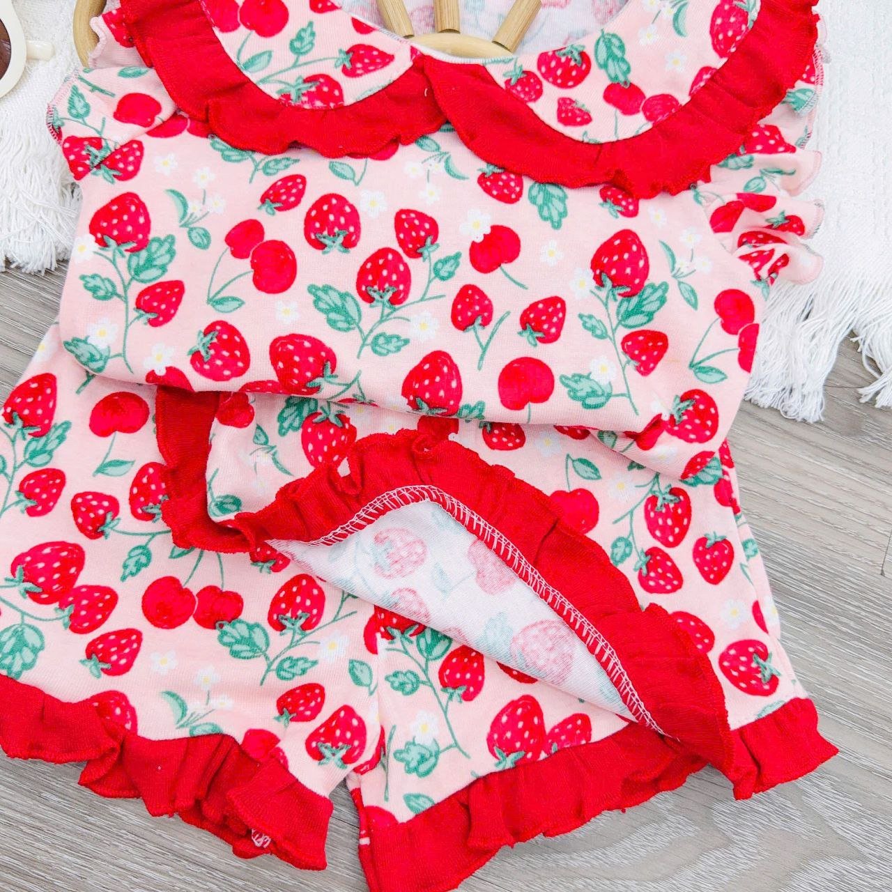 Mia features a dramatic, double-layered top with a Peter Pan collar and a contrasting ruffle trim on the armhole, which perfectly frames your little one’s face. The matching skorts have a sweet wrap-around ruffle detail, giving the look of a skirt with the comfort and freedom of shorts for all-day play.